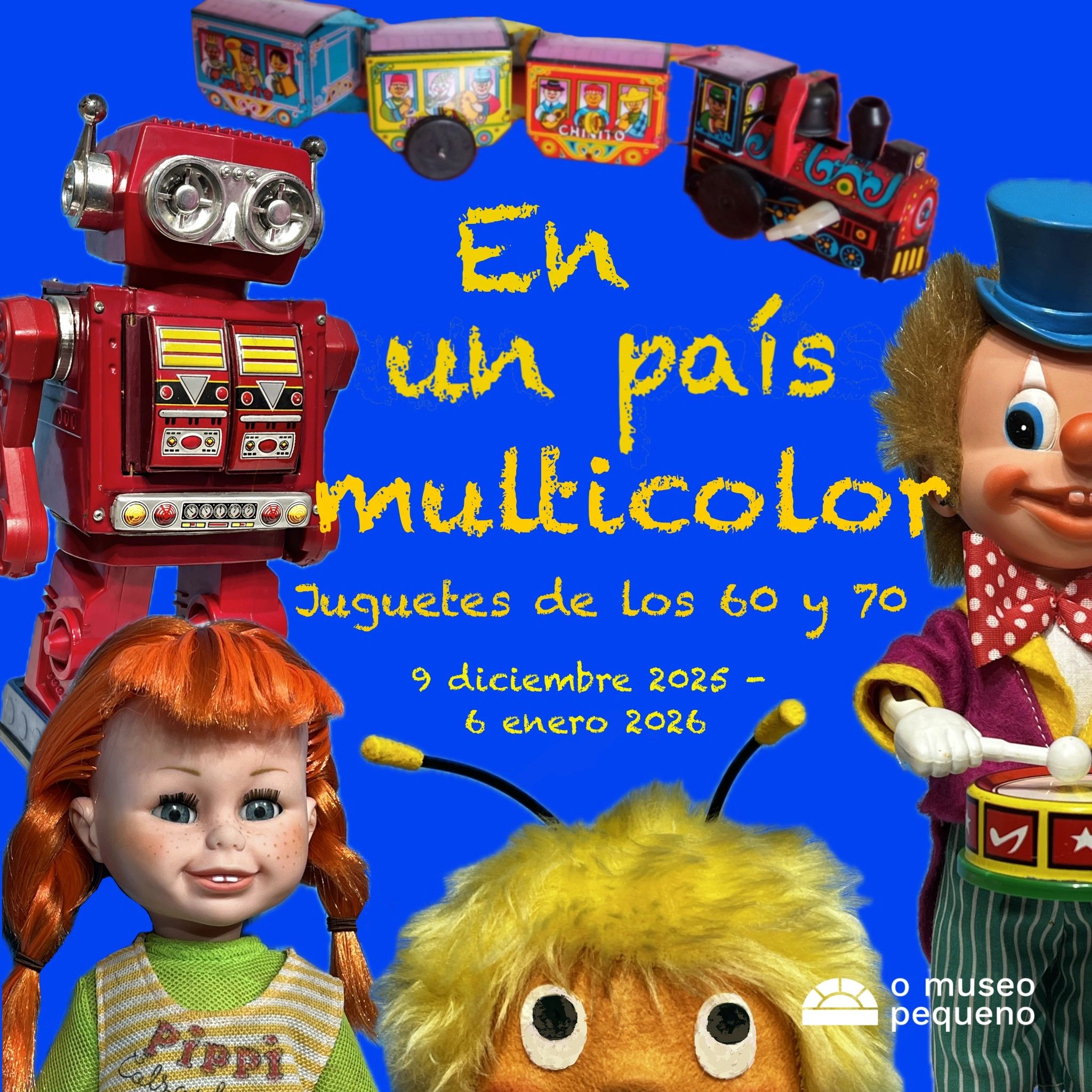 O museo pequeno presenta “En un país multicolor” (la primera estrofa de la canción de la serie de dibujos animados de 1978 “La abeja Maya”), una celebración de los juguetes de las niñas y niños españoles de los años 60 y 70. La muestra incluye cerca de un centenar de objetos, entre ellos muñecas, y muñecos, tanto de plástico como de peluche, rígidos y articulados, juguetes mecánicos (coches, trenes, robots), juegos de mesa (Juegos reunidos Geyper, Magia Borrás, Bingo Congost), de manualidades (maletines de la Srta. Pepis), de construcción (Tente, Plasticant, Exín Castillos), puzzles, libros, cuentos, discos, etc. La mayoría de los juguetes han sido manufacturados en España, incluyendo nombres de empresas tan populares como Famosa, Toyse, Vicma, Graines, Jesmar, Ege, Feber, Guillem y Vicedo, Modisa, Airgam, Anubis, Madel, y muchas más. Tambien se han añadido varios juguetes fabricados en otros países, entre ellos Francia, Italia, Alemania, Reino Unido, EE.UU., y Japón.